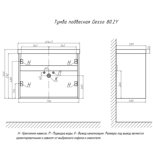 Тумба под раковину подвесная Velvex Gesso tp.GES.9696.80.2Y белый матовый/дуб сонома, 80 см купить