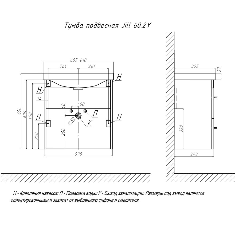 Тумба под раковину подвесная Velvex Jill tp.JIL.9595.60.2Y белый матовый, 60 см