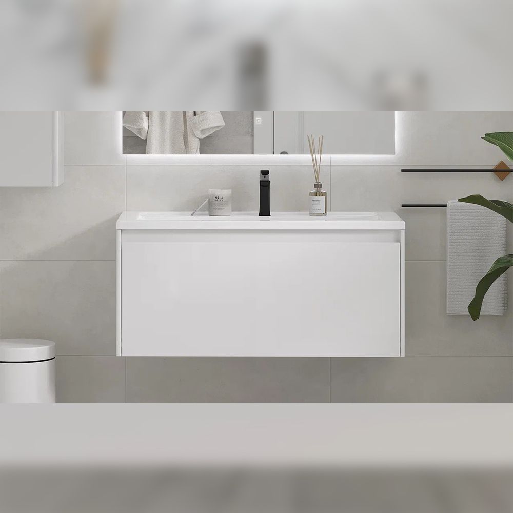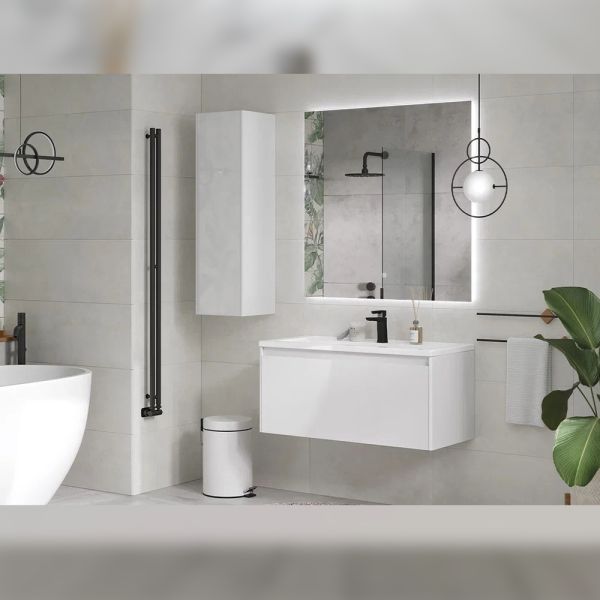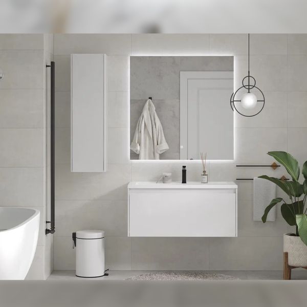 Тумба под раковину подвесная Velvex Klaufs tp.KLA.MAR.100.1Y белый, 100 см: 1 выдвижной ящик, выдвижной органайзер.