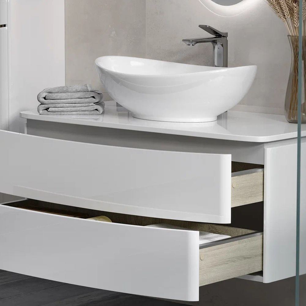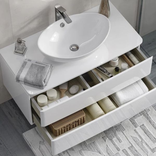 Тумба под раковину подвесная Velvex Luna tp.LUN.100.2Y, 100 см: 2 выдвижных ящика с механизмом открывания push-to-open.