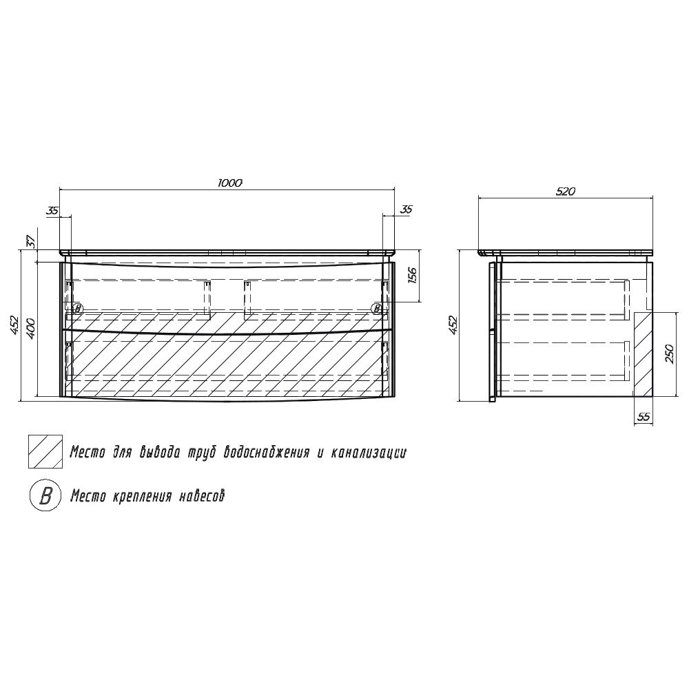 Тумба под раковину подвесная Velvex Luna tp.LUN.100.2Y, 100 см купить
