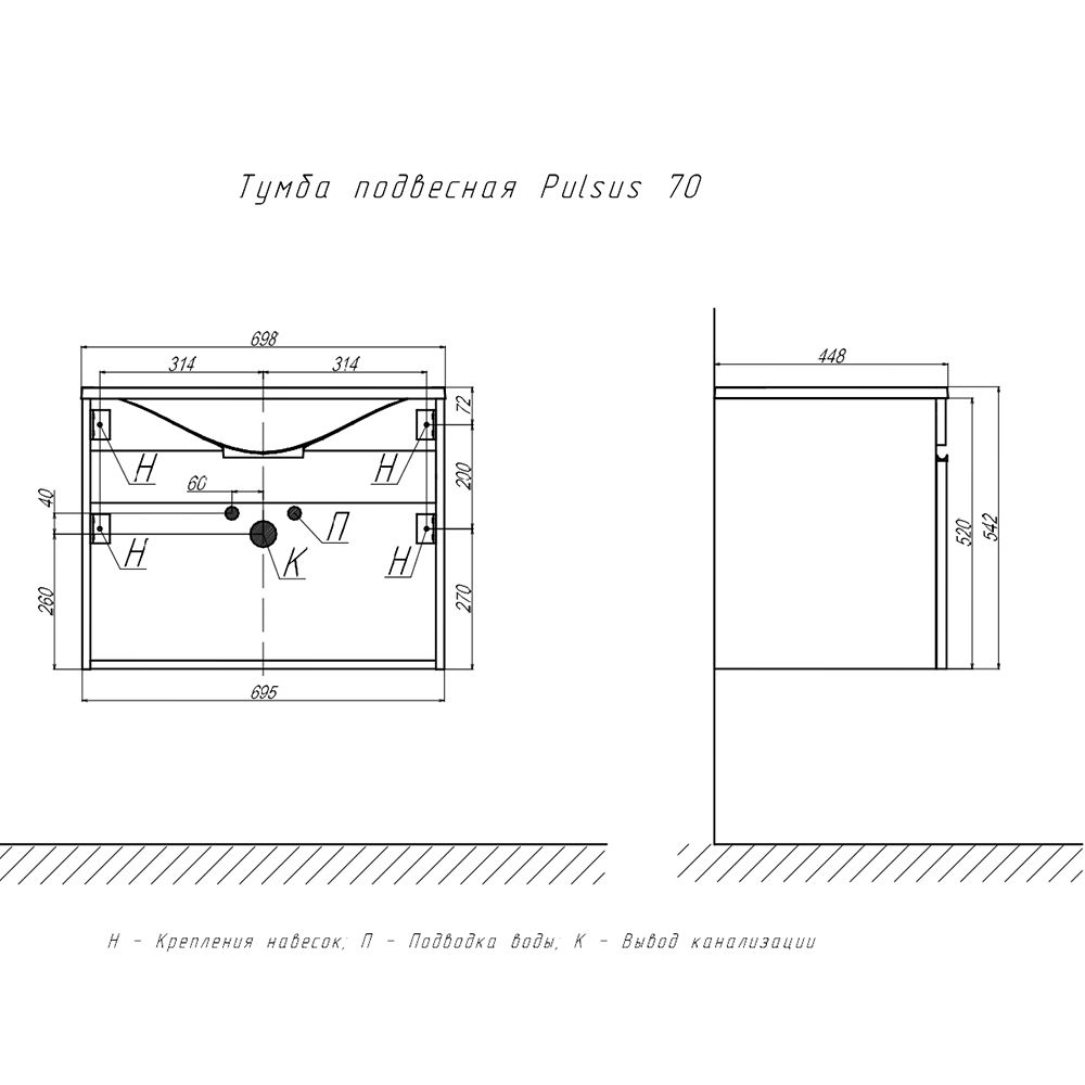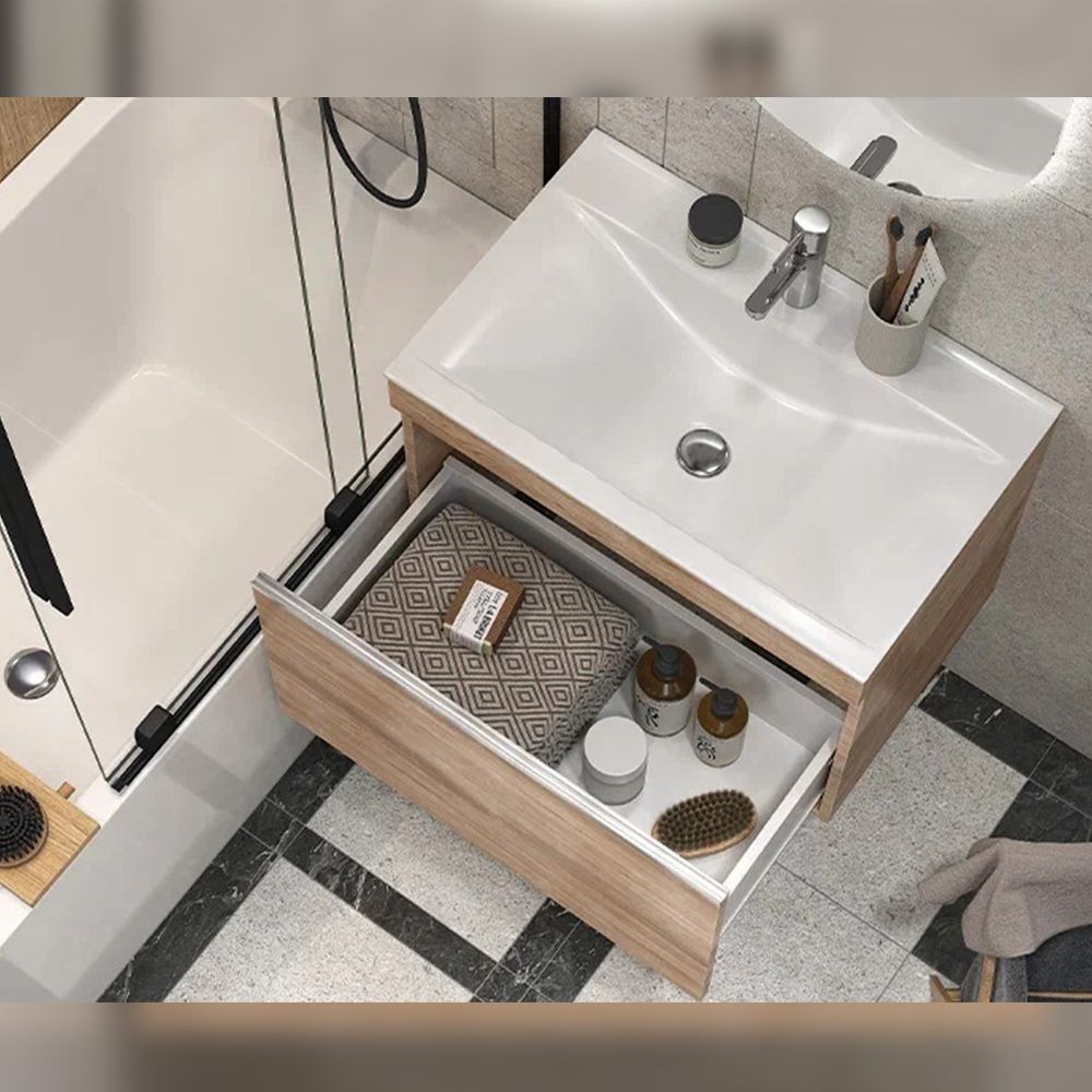 Тумба под раковину подвесная Velvex Pulsus tp.PUL.PUL.70.1Y дуб сонома, 70 см: 1 выдвижной ящик.