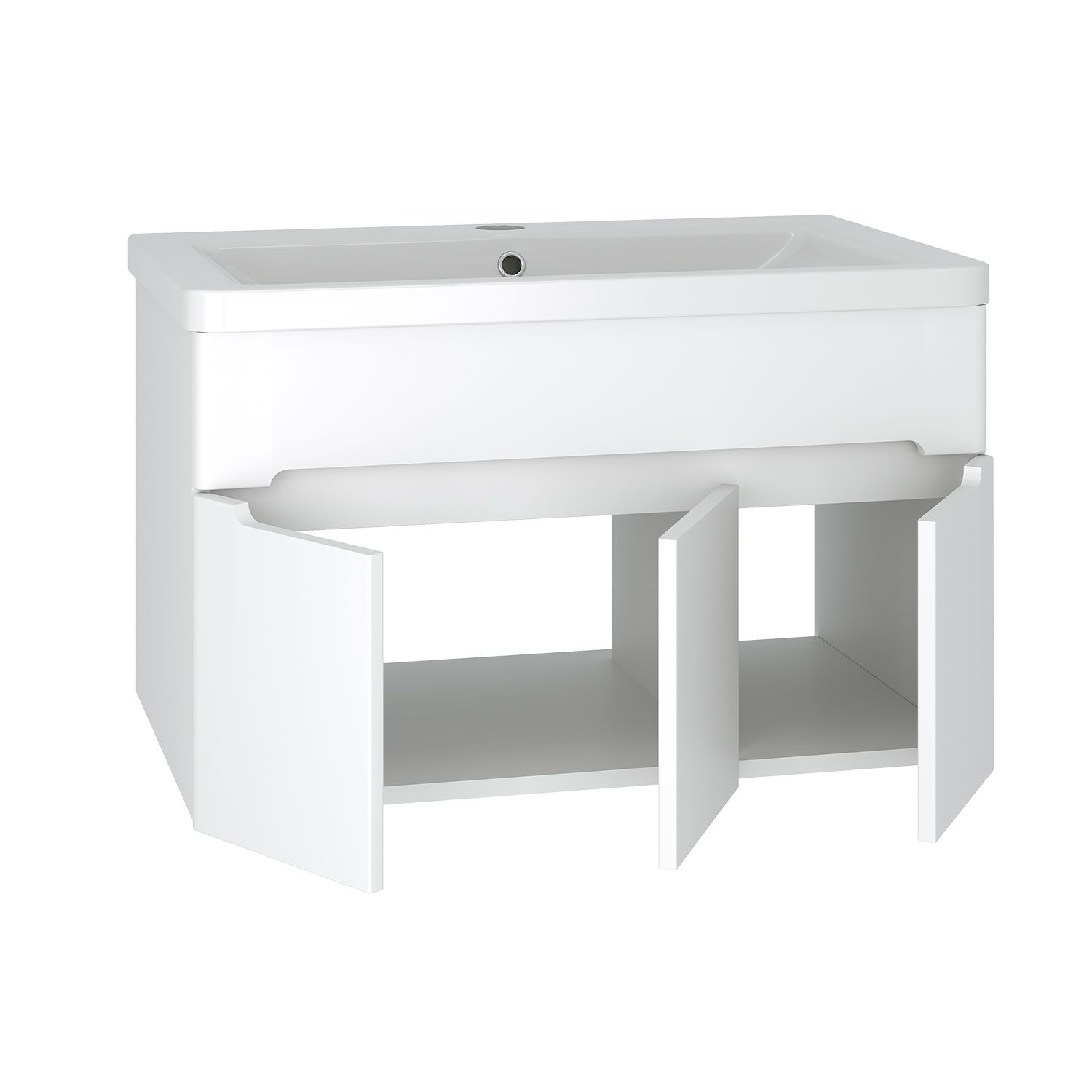 Тумба под умывальник подвесная с тремя распашными дверками. Петли со встроенным доводчиком, навесы - 2шт.