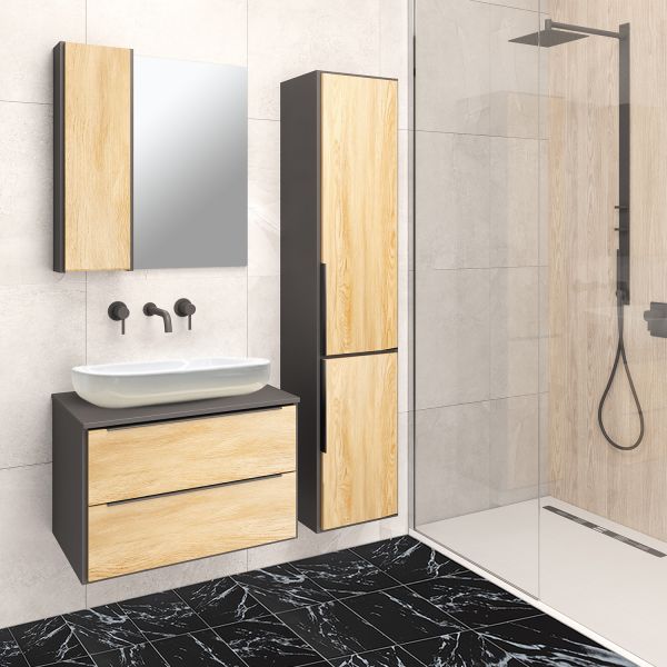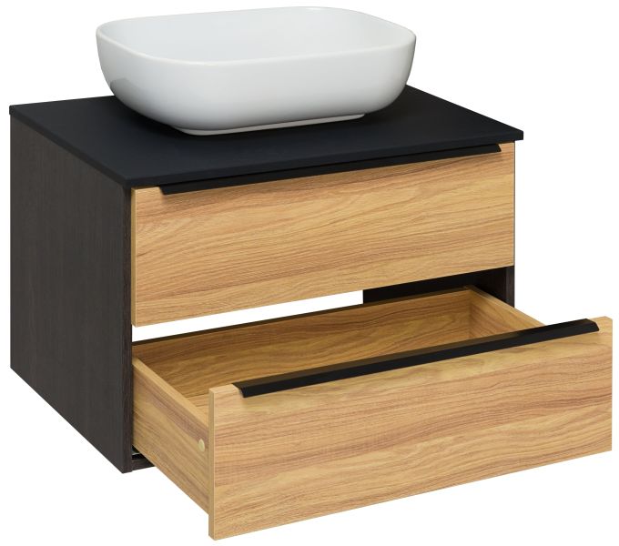 Подвесная тумба функционально состоит из двух ящиков на шариковых направляющих с механизмом плавного закрывания. Модуль может комплектоваться различными по размеру и дизайну накладными умывальниками. Мы предлагаем раковины известного европейского производителя Square 60,Moduo LEAF от Церсанита, Гамма 56 либо Infinity 65