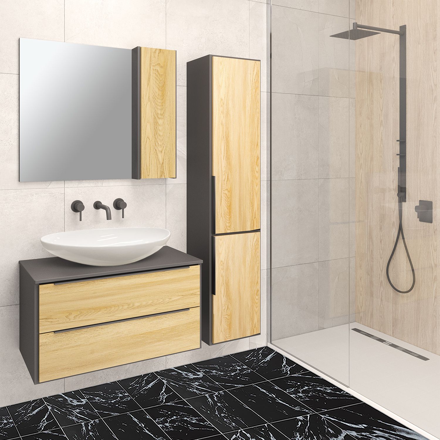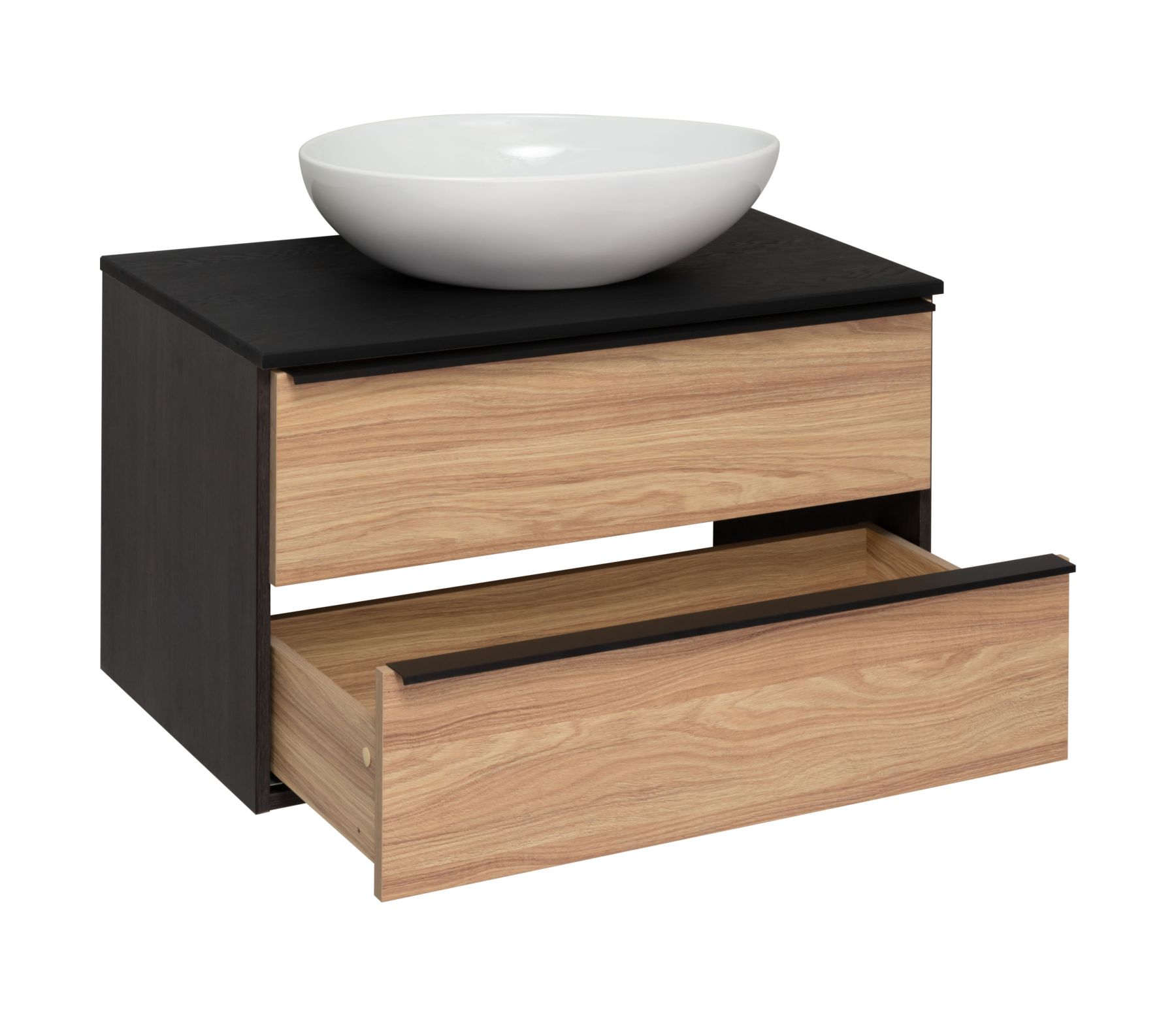 Подвесная тумба функционально состоит из двух ящиков на шариковых направляющих с механизмом плавного закрывания. Модуль может комплектоваться различными по размеру и дизайну накладными умывальниками. Мы предлагаем раковины известного европейского производителя Square 60,Moduo LEAF от Церсанита, Гамма 56 либо Infinity 65