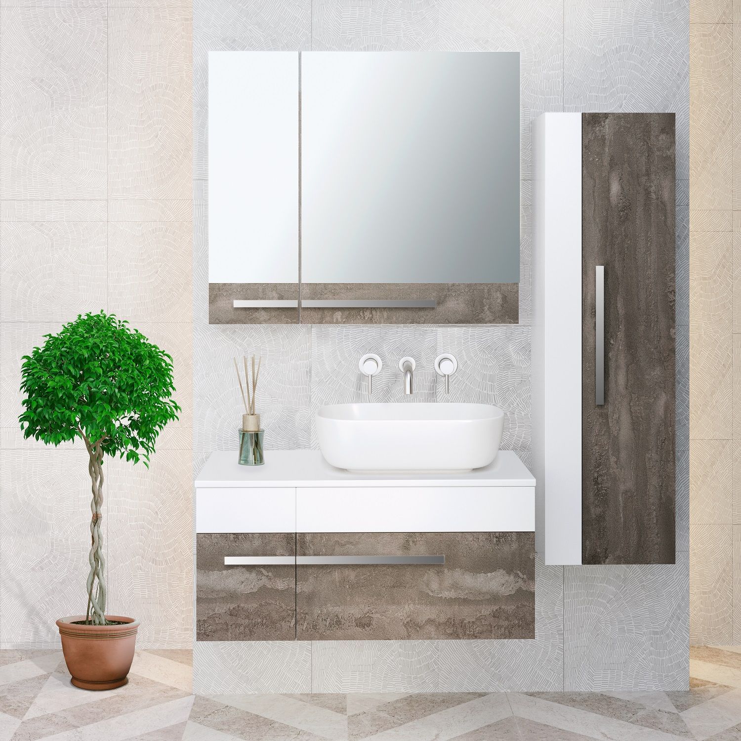 Тумба под раковину Runo подвесная железный камень Вудлайн 85 (00-00001343) купить