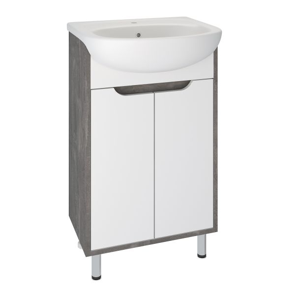 Тумба с раковиной RUNO ЭКО - превосходное решение для современного оснащения ванной комнаты. Тумба под раковину ЭКО (напольная) это стильное сочетание текстуры природного необработанного камня на корпусе с белыми фасадами из ДСП. Тумба в ванную имеет две распашные дверцы и одну внутреннюю полку. В комплекте идут петли, 2 хромированные и 2 пластиковые ножки. Тумба для ванной комплектуется керамической раковиной "Уют" (500*420 мм). Раковина имеет глубину 18 см. Мебель для ванной RUNO - красота и практичность в мелочах!