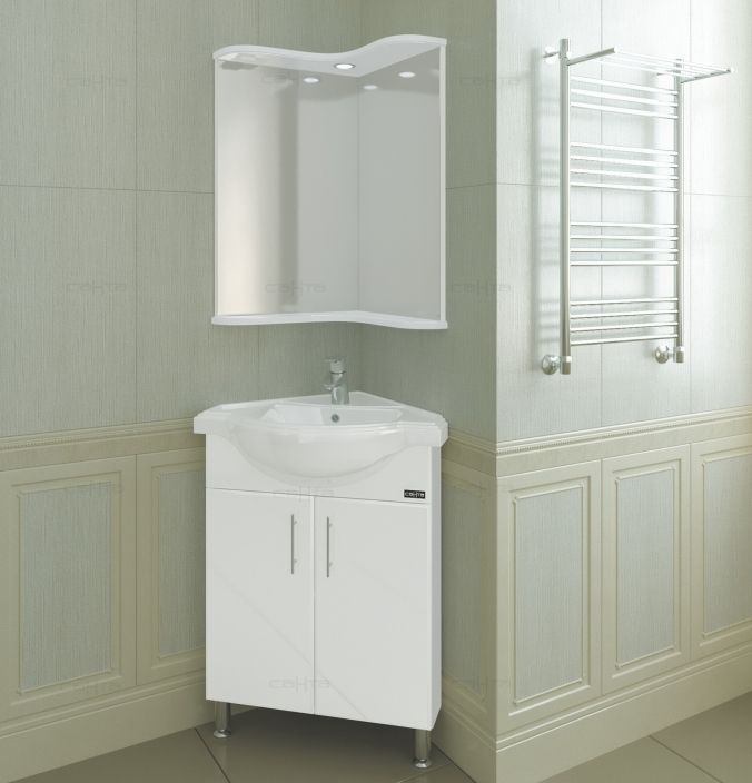Тумба для комплекта СанТа угловая не только функциональный предмет интерьера ванной комнаты, но восхитительное эргономичное дополнение дизайна, как небольшого, так и крупного помещения. Напольный способ установки производится непосредственно на пол, при этом конструкция максимально устойчива при серьезных физических нагрузках.Компания СанТа использует при производстве высококачественные водоотталкивающие материалы (ВЛДСП), соответствующие всем необходимым требованиям безопасности. Коллекция выполнена в эксклюзивном дизайнерском решении в лучших традициях современного стиля. Белый, основной цвет исполнения СанТа, отлично подходящий большинству дизайнерских решений. Тумба под раковину предусматривает удобную и вместительную систему хранения, состоящую из дверей. Качественные доводчики позволяют обеспечить мягкое и тихое закрывание.Россия родина бренда СанТа, вся продукция производится со строгим соблюдением всех стандартов, благодаря чему можно быть абсолютно уверенным в надежности и высоком качестве. Тумба для комплекта СанТа создаст уют и комфорт в любом дизайнерском решении, и ванная комната обретет неповторимый элемент интерьера.