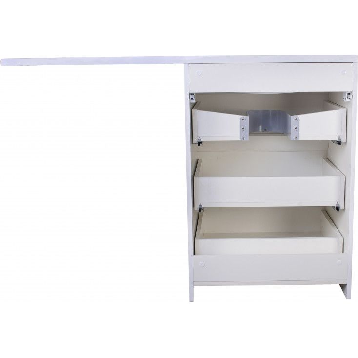 Особенности производства моделей линии "El Fante": 1. При производстве изделий используется самая толстая пленка в 2,8 микрон (производство Южная Корея). Данная пленка придает мебели дополнительный глянцевый эффект и сверхровную поверхность, что характерно в большей степени для окрашенных изделий. 2. Лицевые фасады и боковины изделий изготовлены из высококачественного влагостойкого МДФ "Kronospan", а внутренние ящики из ЛДСП "Kronospan". 3. Для подвесных тумб используются усиленные хромированные навесы "CAMAR", мирового лидера в производстве высококачественных креплений для мебели. 4. Элегантная и надежная мебельная фурнитура и направляющие скрытого монтажа от "Boyard". 5. Внутренние ящики во всех моделях собраны с помощью евро-винтов, которые обеспечивают дополнительную жесткость и значительно увеличивают срок эксплуатации. 6. Дюбель-стяжки, благодаря которым изделие приобретает надежное крепление, используются только от "Hettich" (Германия). 7. При натяжении пленки каждый элемент изделия полностью проклеивается по всей поверхности высококачественным клеем "Henkel" (Германия). 8. При обработке фасадов МДФ применяется кромочный материал "Rehau" (Германия) 4 мм. 9. Все открытые элементы при сборке мебели (в том числе, евро-винты и дюбель-стяжки) закрываются надежными заглушками "Hettich". 10. Для упаковки изделий применяется 5-ти слойный картон Высшего Класса. Все эти особенности производства позволяют нам уверенно давать нашим клиентам ГАРАНТИЮ на данную линейку мебели для ванных комнат 5 ЛЕТ !