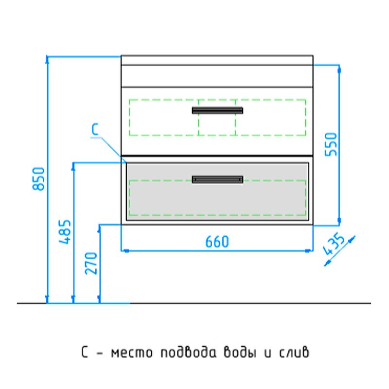 Габариты корпуса тумбы (ШхВхГ): 660х550х435 мм.
