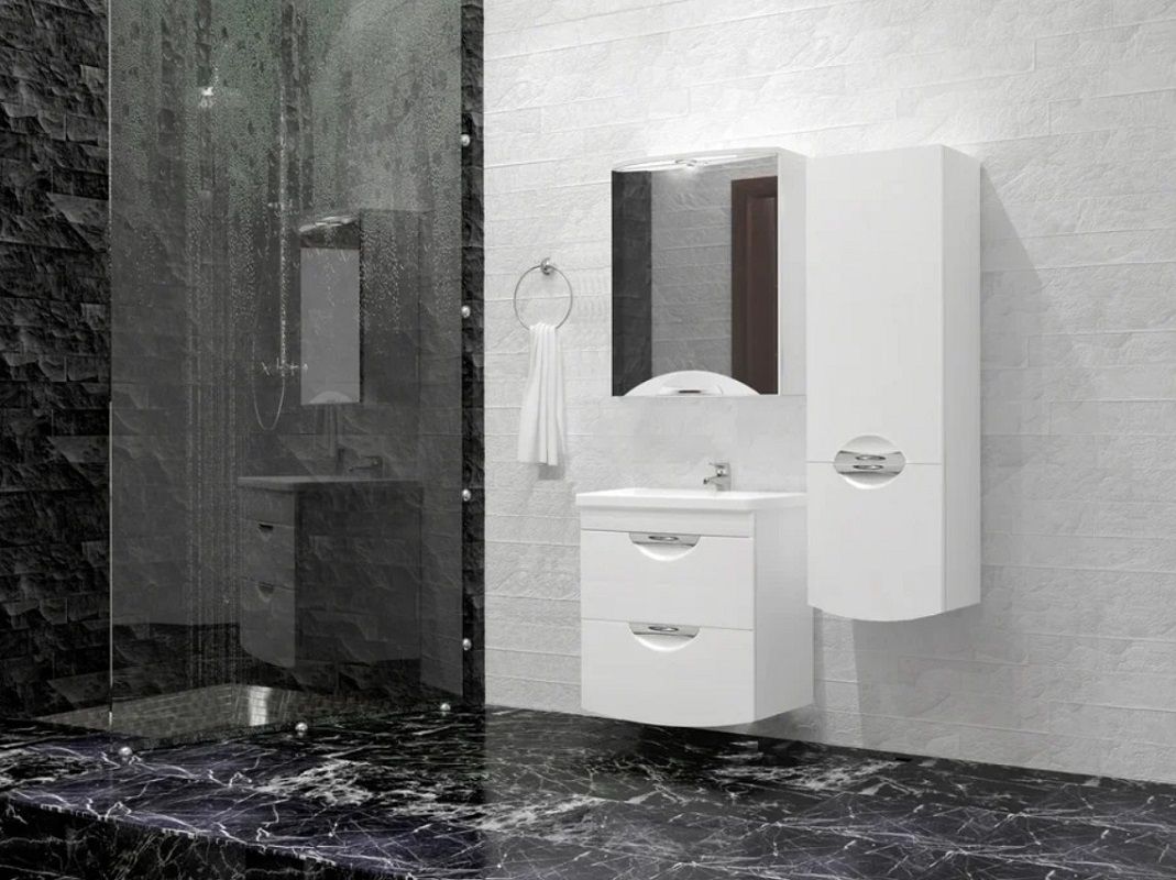 Тумба с раковиной STYLE LINE ЛС-000010039 "Жасмин 2" (2 ящ.), Комо 50, Люкс белая, PLUS Подробнее