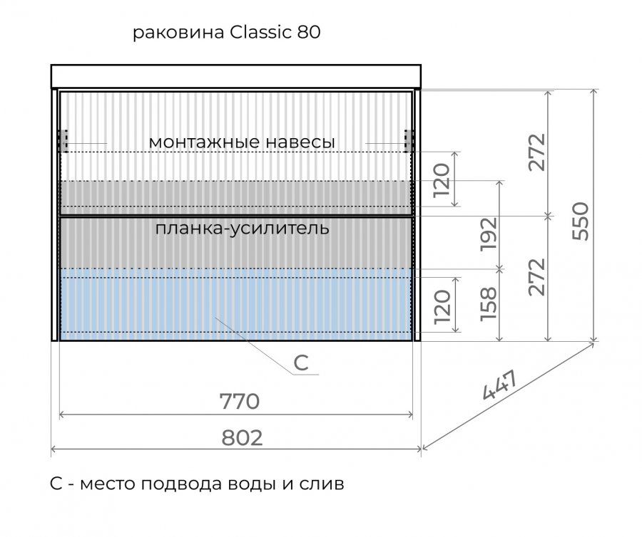 Размеры: Тумба подвесная (ш/г/в): 770x447x550 мм Раковина Andrea Classic 80 (ш/г/в): 80... Подробнее
