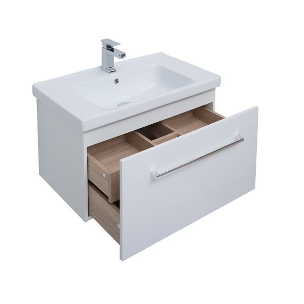 Подвесная современная коллекция в 3-х размерах с 1-м выдвижным ящиком, с доводчиками Hettich Возможна комплектация зеркалом, зеркальным шкафом, пеналом, полупеналом.