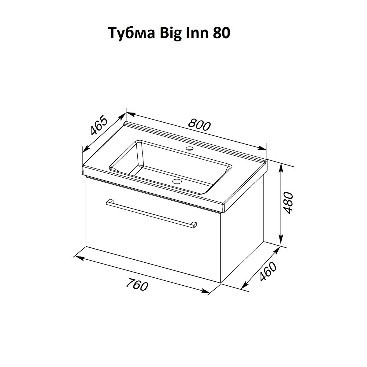 Тумба подвесная Dreja.Rus BIG INN 80 под умывальник Гармония 80, белый глянец