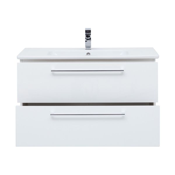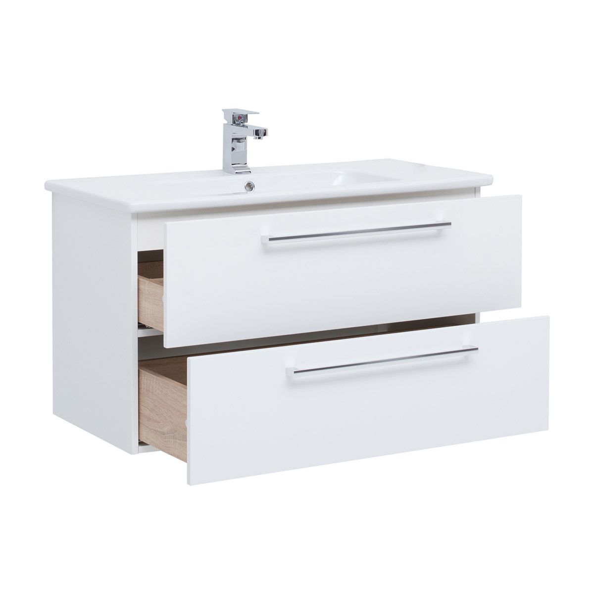 Подвесная современная коллекция в 3-х размерах с 2-мя выдвижными ящиками с доводчиками Hettich Возможна комплектация зеркалом, зеркальным шкафом, пеналом, полупеналом.