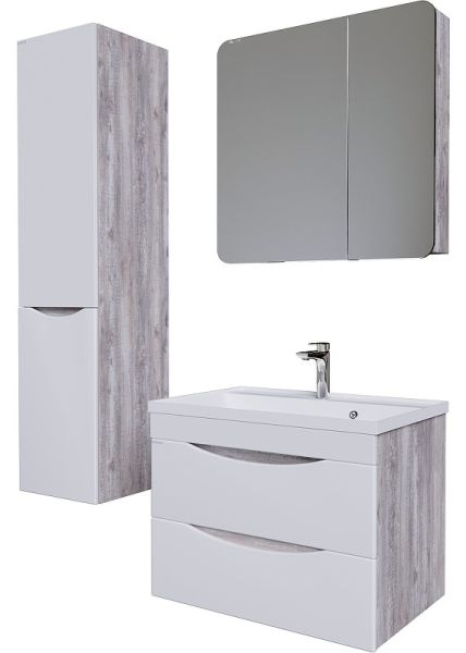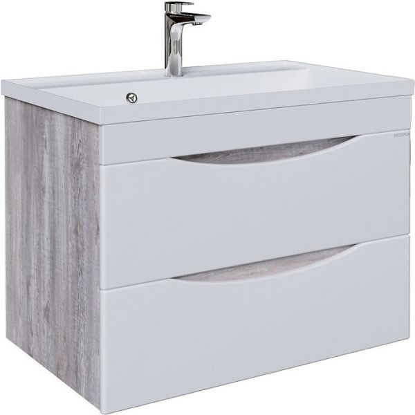 Тумба подвесная под раковину Grossman Талис 108014 80см бетон пайн/белый глянец