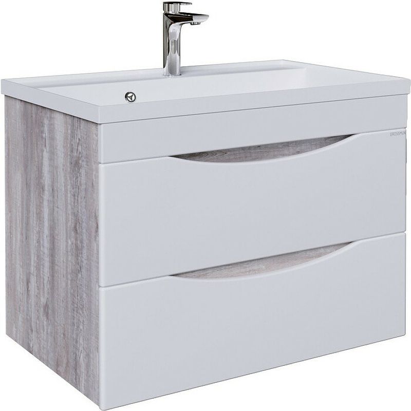 Тумба подвесная под раковину Grossman Талис 108014 80см бетон пайн/белый глянец купить