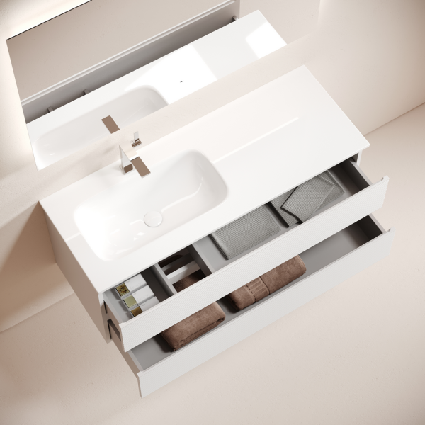 • Тумба с двумя выдвижными ящиками и с доводчиками скрытого монтажа