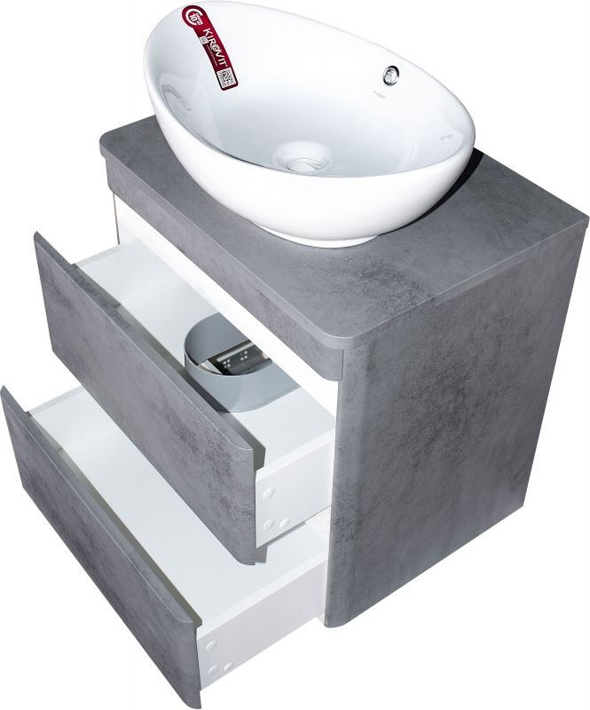 Тумба подвесная под раковину Style Line "Атлантика 80" СС-00002283 Люкс бетон темный, (2 ящ.), со столешницей МДФ, PLUS