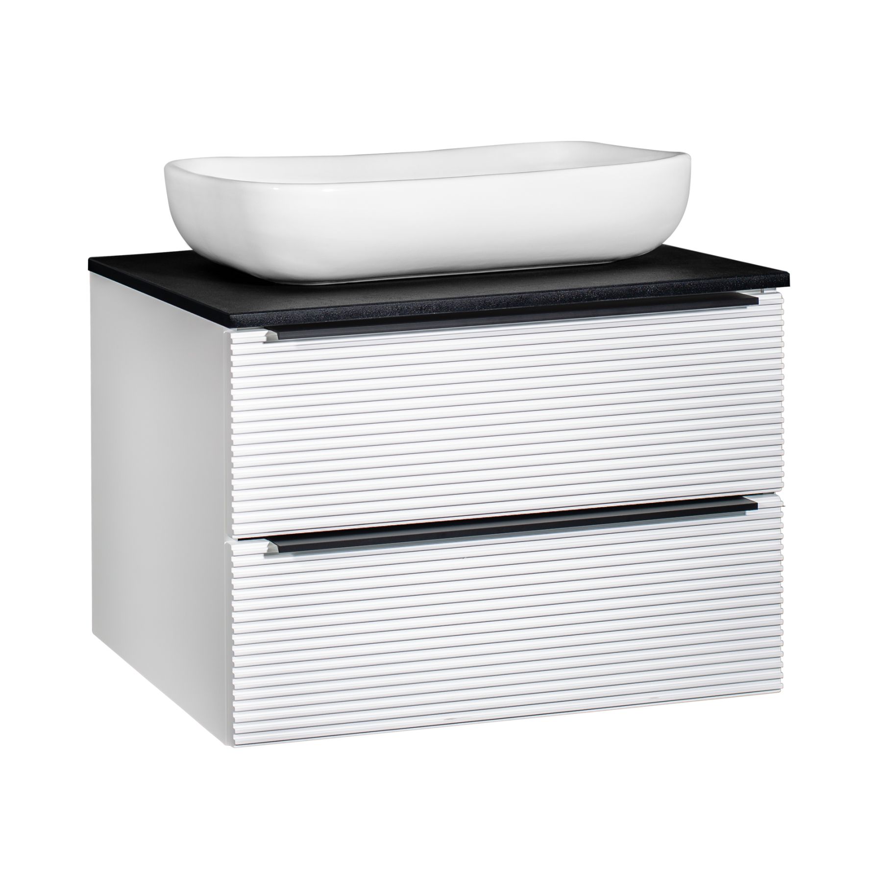 Тумба под раковину в ванную RUNO Орлеан (подвесная) – это изысканность и утончённая роскошь в интерьере. Рифленые фасады визуально «оживляют» и «приводят в движение» всю обстановку комнаты, сохраняя при этом умиротворение и покой. Цвета корпуса и фасада имеют идеальное классическое цветовое сочетание белого и чёрного цветов, которые идеально впишутся в любой интерьер ванной комнаты. Тумба в ванную оснащена двумя выдвижными ящиками на шариковых направляющих, оснащенных системой плавного закрывания. В комплекте входят: две металлические ручки, навесы для крепления к стене. К тумбе для ванной подойдут умывальники на столешницу: «OVALE 50» (50х36см) - идеальное решение для стильного интерьера ванной, создан для минималистичных интерьеров и подойдёт для санузлов в стиле лофт, минимализм и хай-тек. Строгая овальная геометрически правильная форма раковины, усиливает идею лаконичности в дизайне, устанавливается на столешницу, накладным методом. «PALLA D41» (диаметр 41см) - идеальное решение для стильного интерьера ванной, создан для минималистичных интерьеров и подойдёт для санузлов в стиле лофт, минимализм и хай-тек. Строгая круглая геометрически правильная форма раковины, усиливает идею лаконичности в дизайне, устанавливается на столешницу, накладным методом. «TRE 48» (48х37см) - идеальное решение для стильного интерьера ванной, создан для минималистичных интерьеров и подойдёт для санузлов в стиле лофт, минимализм и Хай-Тек. Строгая прямоугольная форма с округлыми углами усиливает идею лаконичности в дизайне, устанавливается на столешницу, накладным методом. «TERZO 60» (59х39см) - идеальное решение для стильного интерьера ванной, создан для минималистичных интерьеров и подойдёт для санузлов в стиле лофт, минимализм и хай-тек. Асимметричная раковина, которую можно установить любой стороной, дизайнерское решение для нестандартных интерьеров, усиливает идею лаконичности в дизайне, устанавливается на столешницу, накладным методом. И другие накладные раковины бренда RUNO.