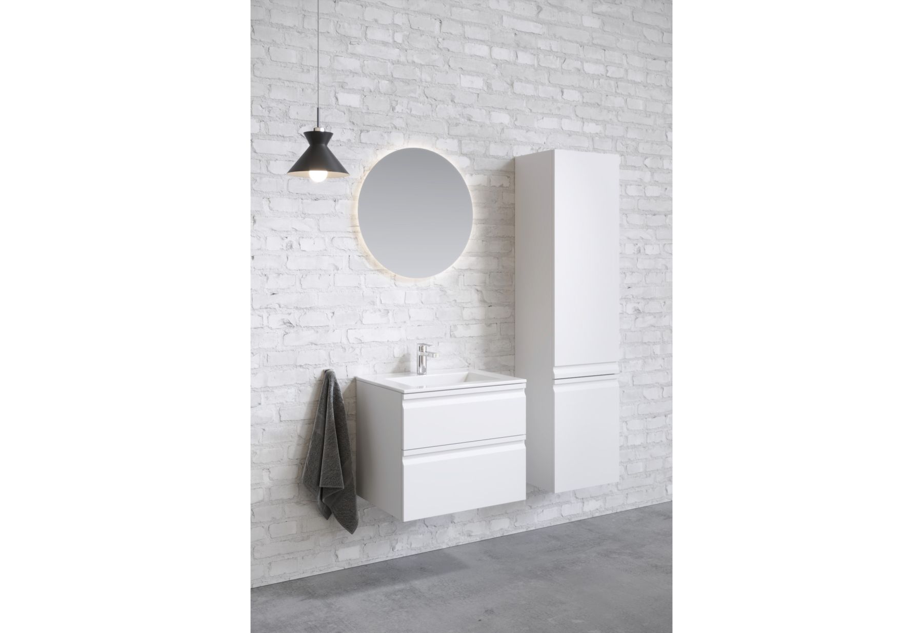 Качественные материалы: Корпус изготовлен из влагостойкого ЛДСП, фасады из ЛМДФ с последующей покраской в 5 слоев с технологией УФ-отверждения, тумба устойчива к воздействию влаги и легко чистится.
