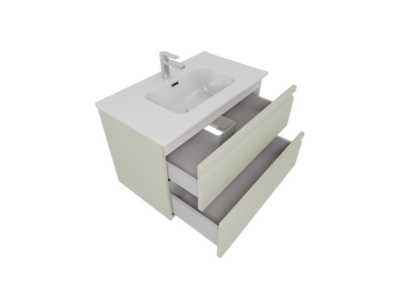 Мебельная раковина: Раковина из 100% санфарфора с идеальной гладкой поверхностью не только выглядит стильно, но и обеспечивает легкость в уходе. Несмотря на компактную глубину, раковины обладают достаточно вместительной чашей, предотвращающей разбрызгивание воды.