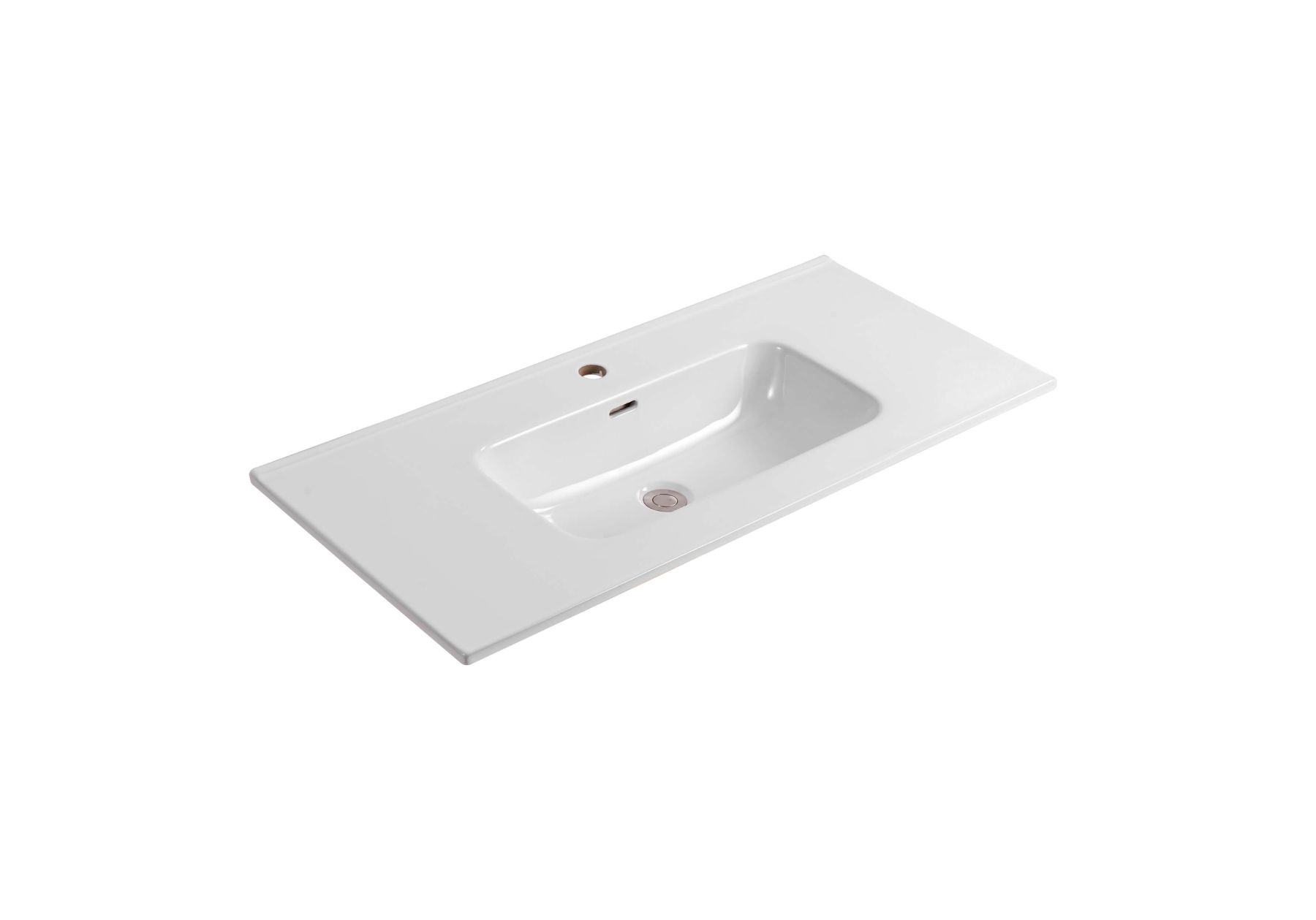 • Раковина с декоративной накладкой на отверстие перелива в цвете хром, 1 отверстие под смеситель, встроенный канал перелива, донный клапан в комплект не входит