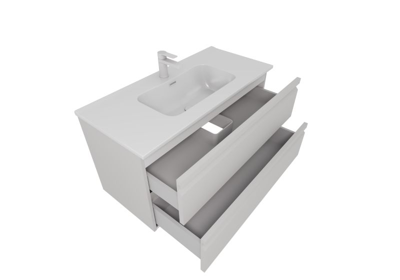 Габариты (Д В Ш), мм: 1010*545*46Материал корпуса тумбы: ЛДСП 16мм Эггер с последующей покраской в 5 слоевМатериал фасада тумбы: ЛМДФ 22мм Эггер с последующей покраской в 5 слоевМонтаж: подвеснойМатериал раковины: 100% санфарфорДва выдвижных ящикаНаправляющие с доводчиком GTV, плавное скольжение и мягкое закрываниеНавесы усиленные (100кг/пара)Мебель поставляется в собранном видеДля сифона диаметром 1 1/4 x 32 ммГарантия: на мебель 2 года, на раковину 10 лет