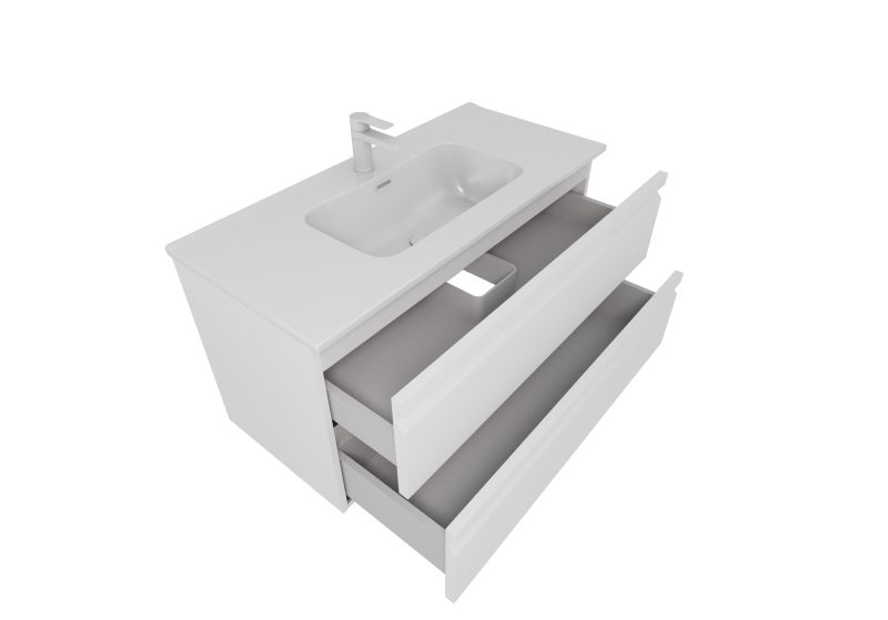 Габариты (Д В Ш), мм: 1010*545*46Материал корпуса тумбы: ЛДСП 16мм Эггер с последующей покраской в 5 слоевМатериал фасада тумбы: ЛМДФ 22мм Эггер с последующей покраской в 5 слоевМонтаж: подвеснойМатериал раковины: 100% санфарфорДва выдвижных ящикаНаправляющие с доводчиком GTV, плавное скольжение и мягкое закрываниеНавесы усиленные (100кг/пара)Мебель поставляется в собранном видеДля сифона диаметром 1 1/4 x 32 ммГарантия: на мебель 2 года, на раковину 10 лет