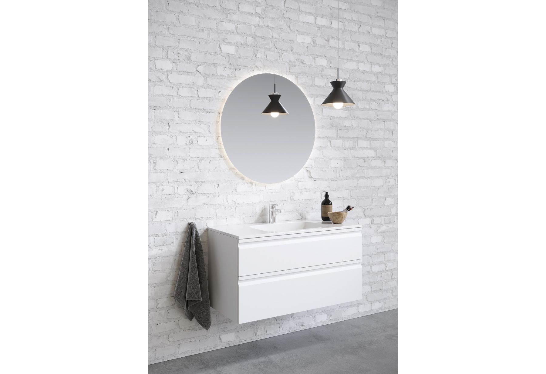 Мебельная раковина: Раковина из 100% санфарфора с идеальной гладкой поверхностью не только выглядит стильно, но и обеспечивает легкость в уходе. Несмотря на компактную глубину, раковины обладают достаточно вместительной чашей, предотвращающей разбрызгивание воды.