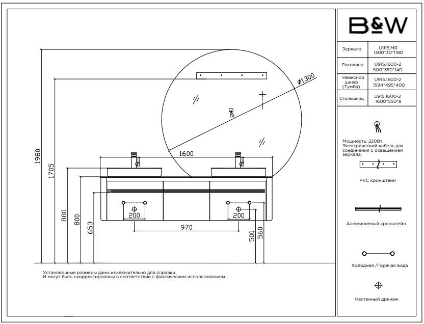 Тумба с раковиной Black&White Universe 9151600-2 Double 160 см бежевый