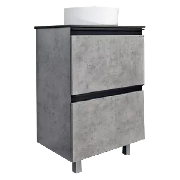 Тумба с раковиной Comforty Эдинбург 00-00004767 60 см Бетон светлыйХарактеристики: Тумба: Цвет: бетон светлый. Габариты вместе с раковиной (ШхВхГ): 60x95x40 см. Материал фасада и корпуса: ВЛДСП. Система хранения: выдвижные ящики. Оснащение: механизм доводчика, обеспечивающий плавное закрывание. Монтаж: полуподвесной. Тумба подготовлена для подключения водоснабжения снизу. Раковина-чаша: Материал: санфарфор. Цвет: белый. В комплекте поставки: тумба, раковина-чаша Comforty 9111, 2 ножки, 2 черные матовые профильные ручки, столешница из черного керамогранита, крепления