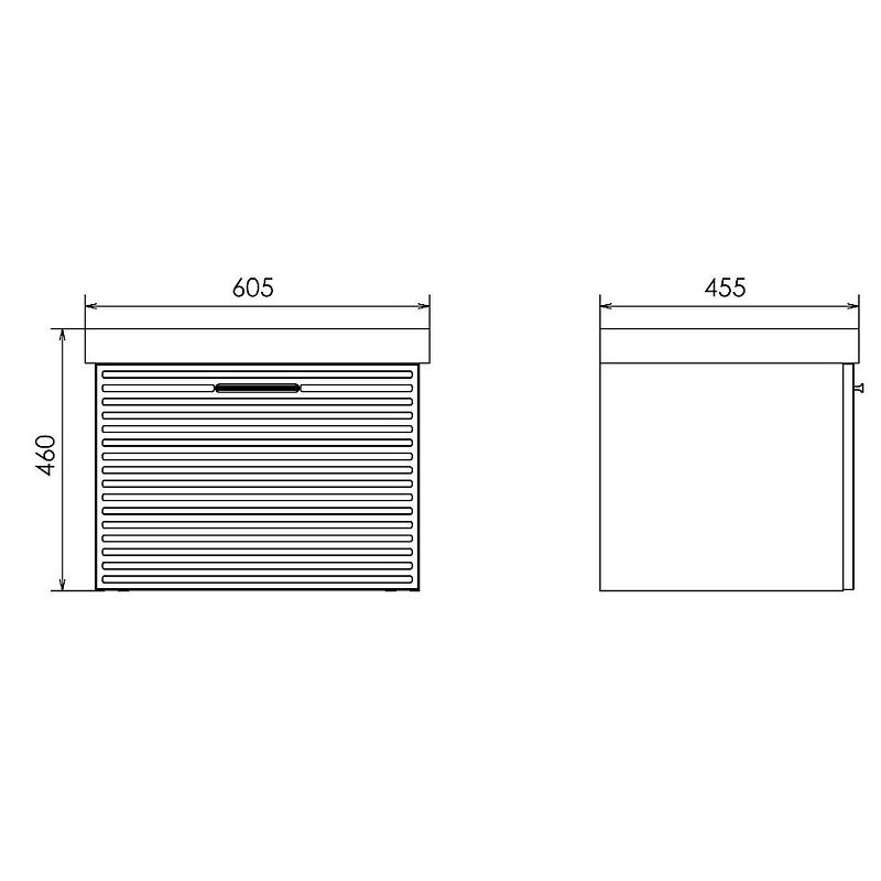 Фасад тумбы из МДФ фрезерован горизонтальным узором и обтянут в пленку цвета "серый шёлк".