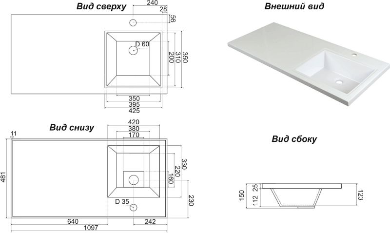 • Возможна установка донного клапана, его нужно приобрести отдельно