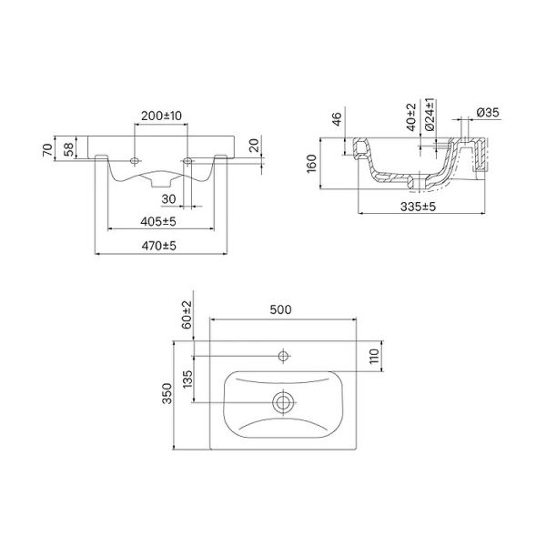 Отверстие под смеситель: 1.