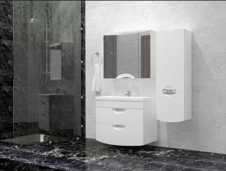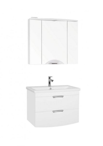 Тумба с раковиной STYLE LINE ЛС-000010037 "Жасмин 2" (2 ящ.), Комо 80, Люкс белая, PLUS Подробнее