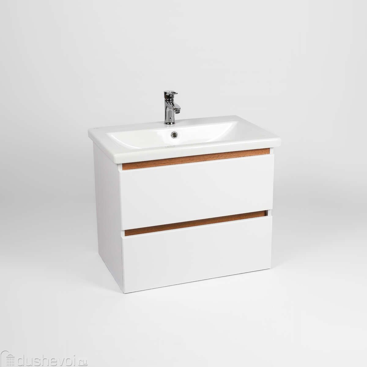 Тумба с раковиной VIANT Мальта 70 подвесная, белая, дуб вотан, 2 ящика купить