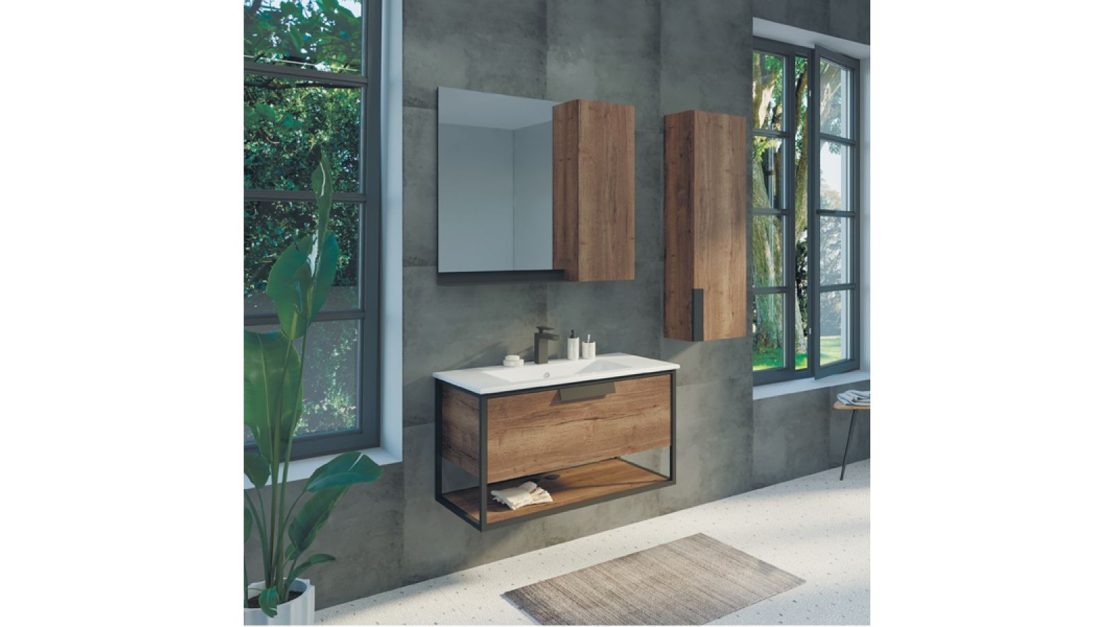 Тумба-умывальник Comforty Бонн-90 дуб темный с раковиной Quadro 90 (00-00003466)
