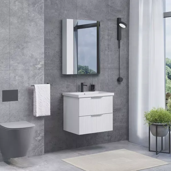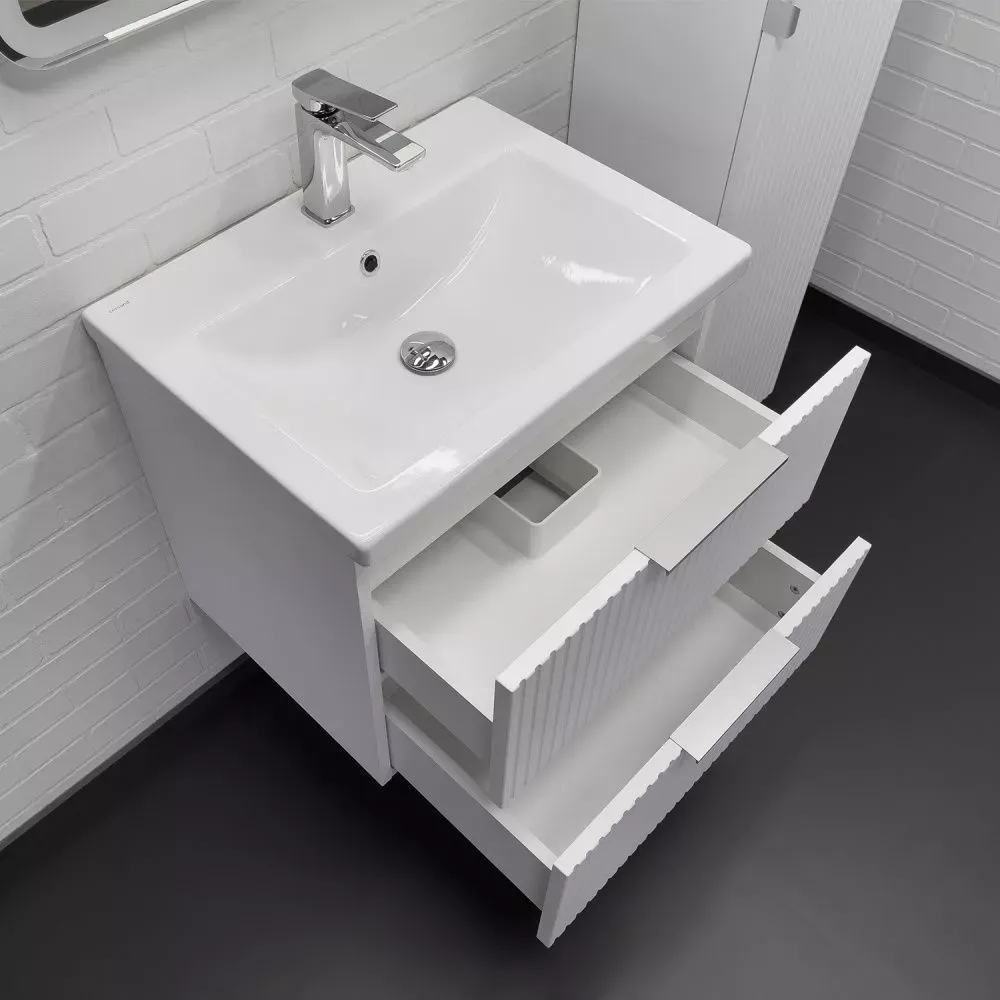 Тумба-умывальник Comforty Лима-60П2 белый матовый с раковиной Como 60