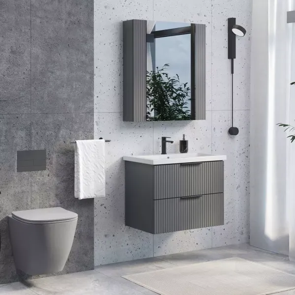 Тумба-умывальник Comforty Лима-70П2 антрацит с раковиной Como 70 купить
