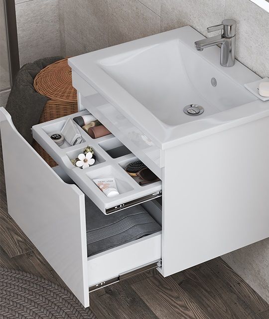 Тумба Grani 600-0-1 подвесная, 1 ящик, раковина Элина, белый, tp.GRI.ELI.60.1YТумба с раковиной