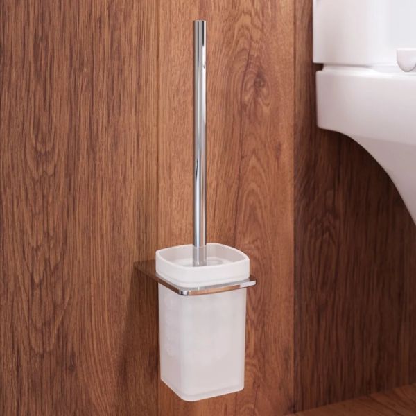Стойка с туалетной щеткой:Материал: сплав металлов. Глянцевое хромированное покрытие приятно на ощупь, устойчиво к помутнению и бытовым повреждениям, сохраняет первоначальный зеркальный блеск на протяжении всего срока службы.