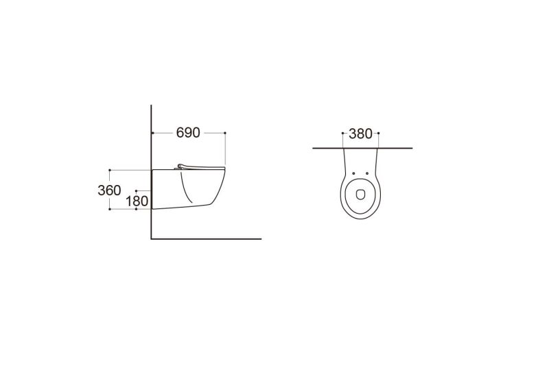 • Прилегание унитаза к стене: