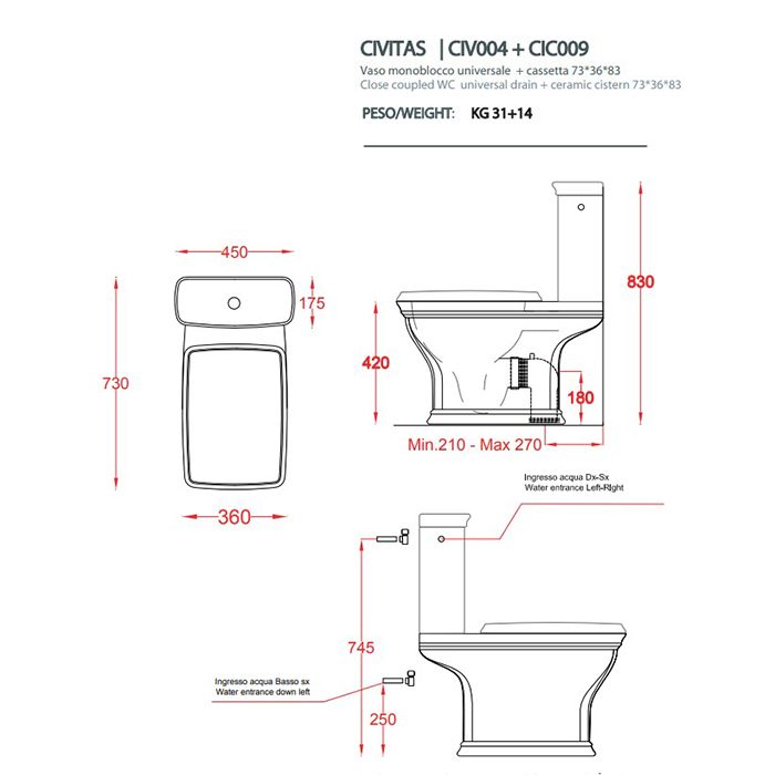 Унитаз Artceram Civitas CIV004 03 00 черныйArtceram CIVITAS Унитаз напольный 36x73 см (без бачка), слив универсальный, цвет: черный