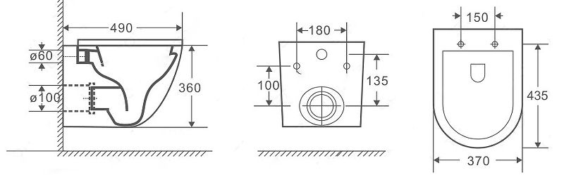 Прилегание унитаза к стене:вплотную