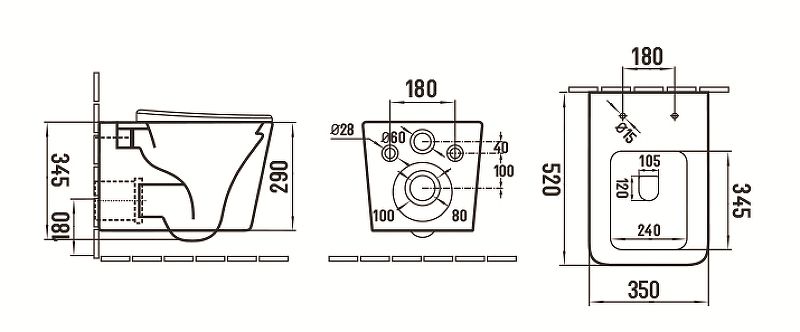 • Прилегание унитаза к стене: