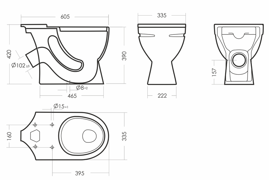 Размеры унитаза-компакта: 380 x 610 x 780