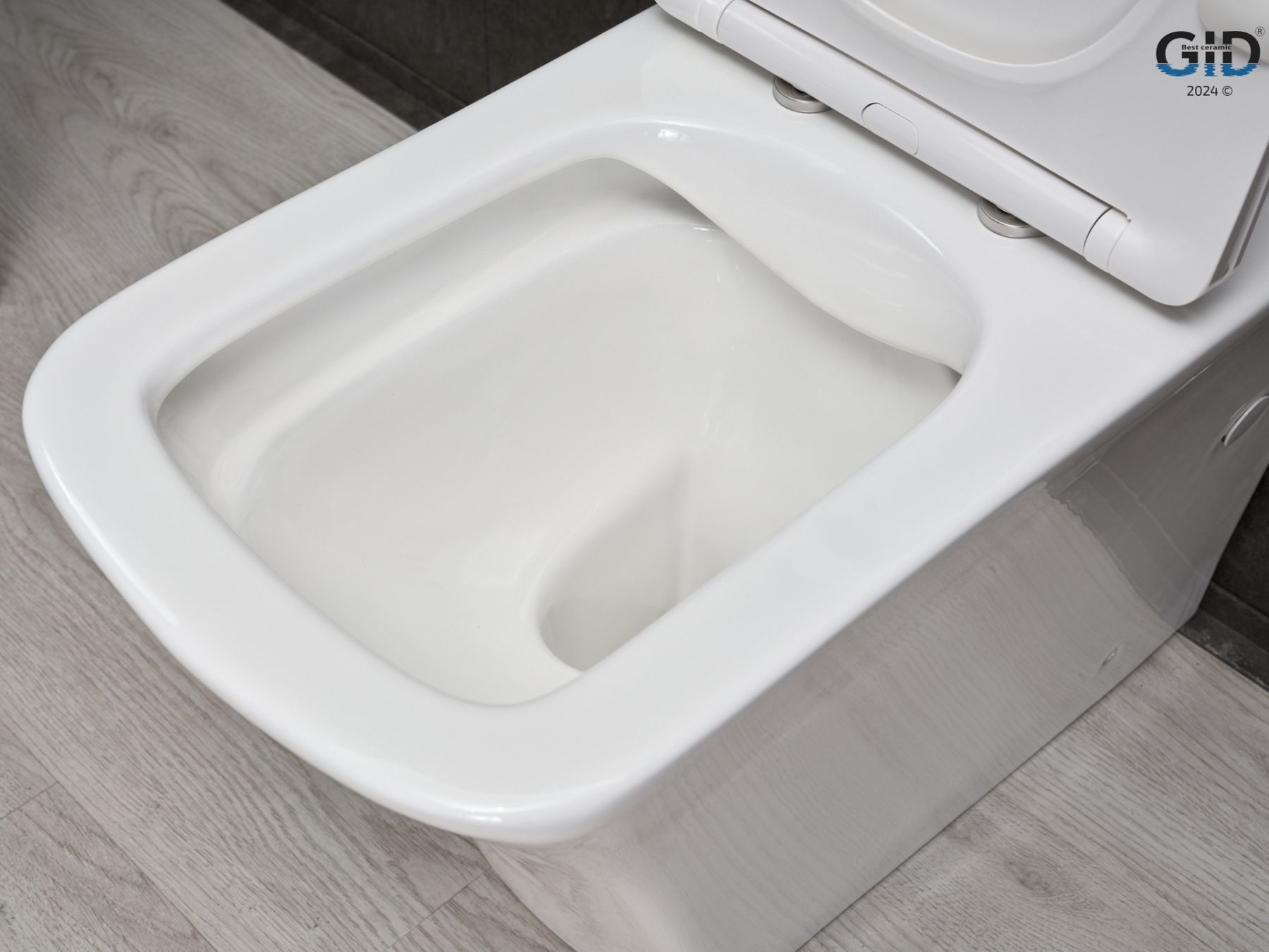 Серия Cuadrado — образец современного дизайна и испанского качества. Соответствие европейским стандартам гарантирует их долговечность. Напольный унитаз GiD Tn2184 с системой смыва от Geberit гарантирует отличную эффективность и низкий уровень шума. Модель выполнена в белом цвете из высококачественной мелкопористой керамики. Сиденье с микролифтом из дюропласта обеспечивает плавное и бесшумное закрытие. Благодаря антигрязевому покрытию и воронкообразной квадратной чаше унитаз обеспечивает высокий уровень гигиены и легкость ухода. Комплект: напольная чаша унитаза GiD Tn2184 с креплениями для скрытого монтажа; бачок с арматурой Geberit; сиденье с креплениями.