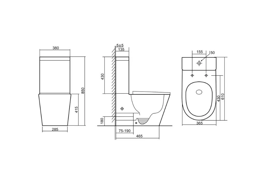 • Прилегание унитаза к стене: