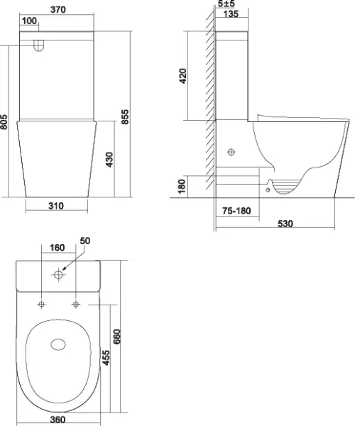 - Антивсплеск: форма воронки унитаза предотвращает образование брызг